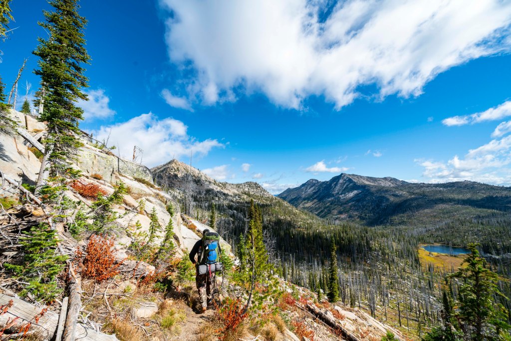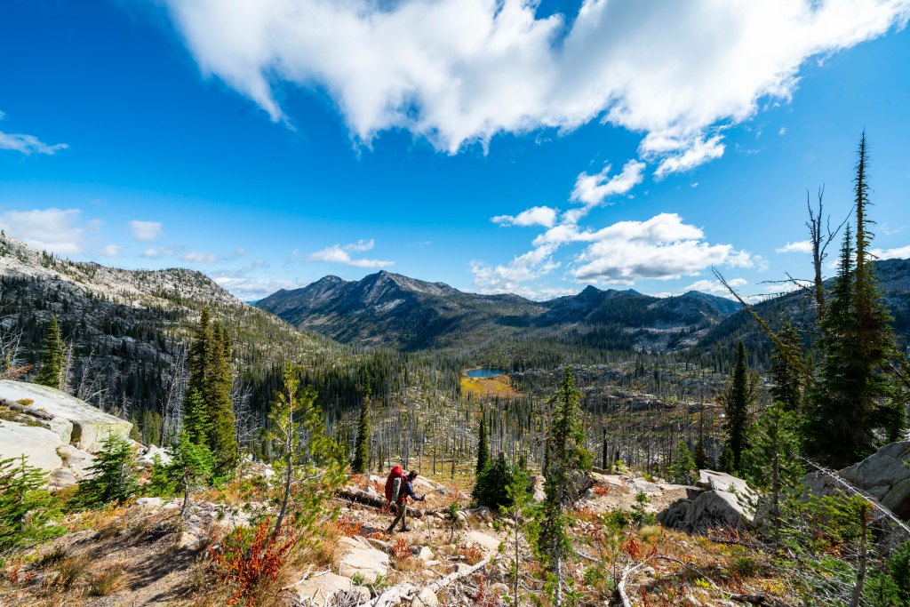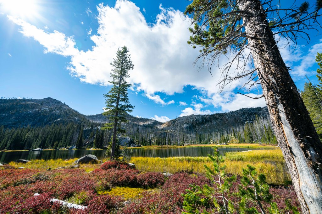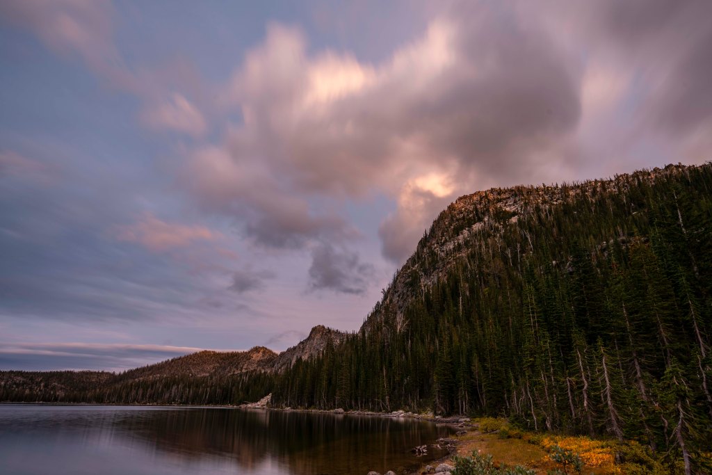 After a couple of weeks of traveling and not doing much photography, I met up with my kids and talked John into leading us on a classic Idaho backcountry adventure, Enos Lake! Be sure to check John’s web site. http://www.splattski.com/2019/enos/index.html The trip starts off with a mellow march past Duck Lake then up and over into the upper Loon Creek Drainage. Fall colors are showing!