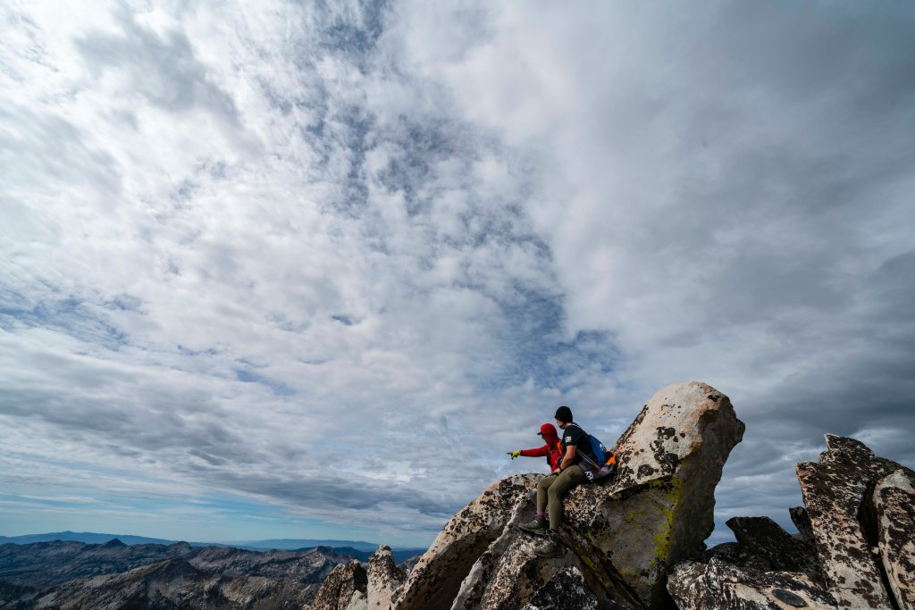 Back to bed and then up early in the morning to bag the highest peak in the Payette National Forest, North Loon Mountain. Here us a view over towards South Loon Mountain as the sun begins to rise on our basin.