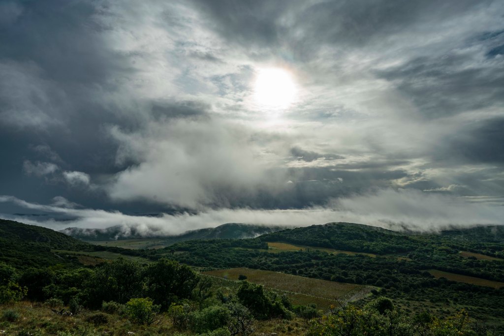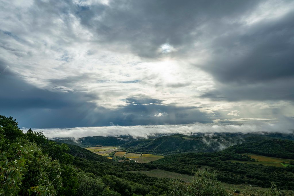 Layers of clouds and vineyards below!