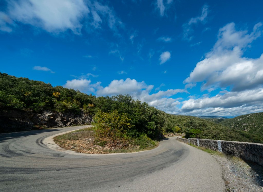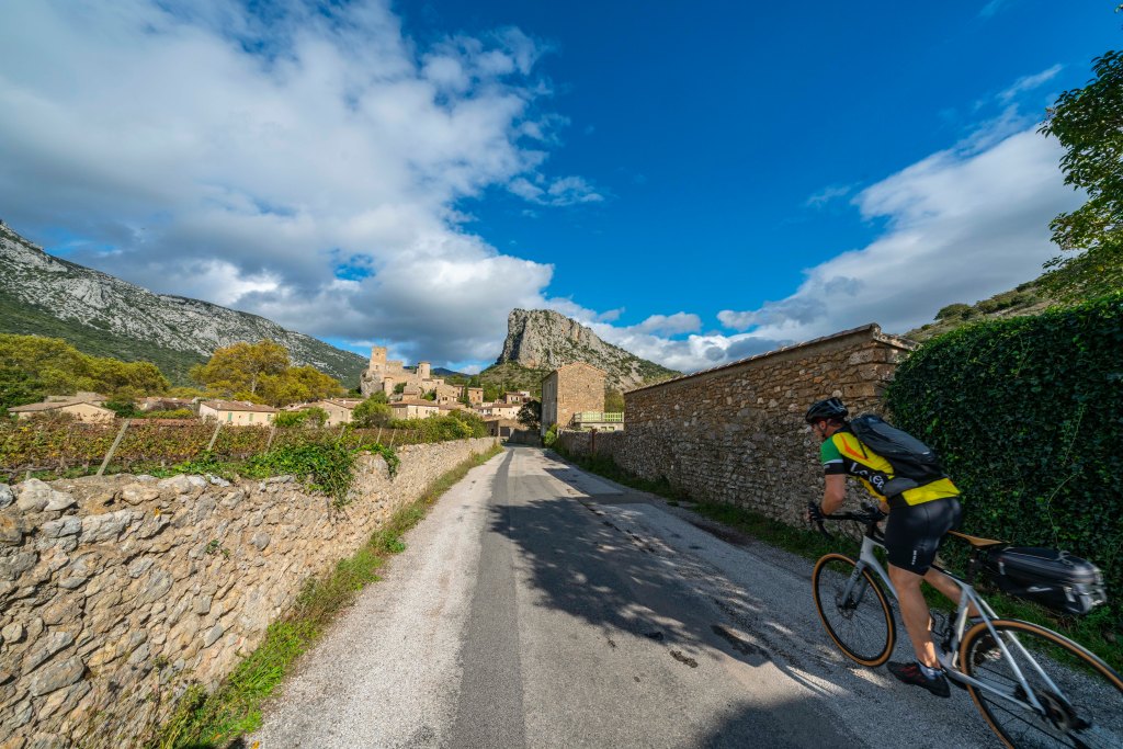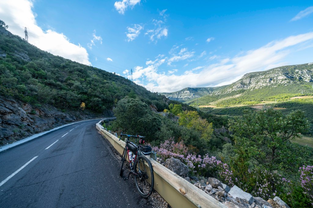 Today was our last full day in Lauret so Rich and I headed west out on what have become familiar roads in this little valley. We spent most of our time on some of the best riding roads we have found so far then found a bunch of better routes off to the west…… the result? The best road ride I have ever done! It starts off with a ride around Pic Saint Loup, here, a new angle.