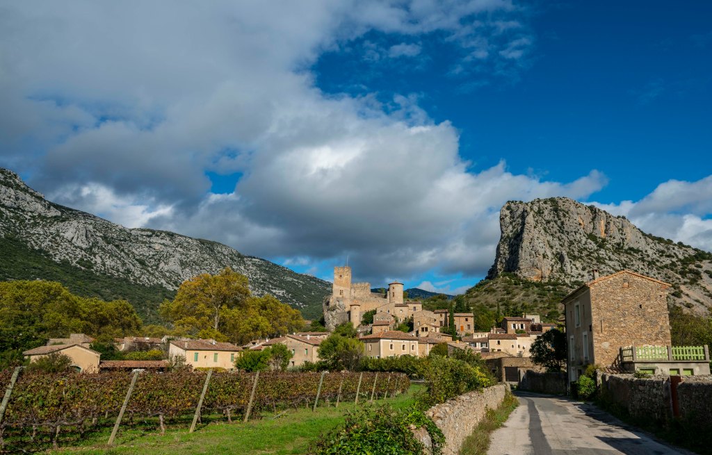 Hard to see in this image but that is the town of Saint Jean de Bueges under the big rock.