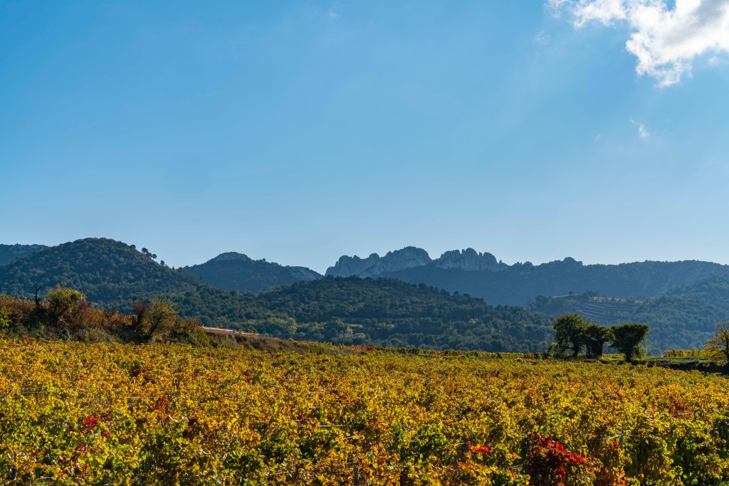 The village of Entrechaux in the gap below the sun.