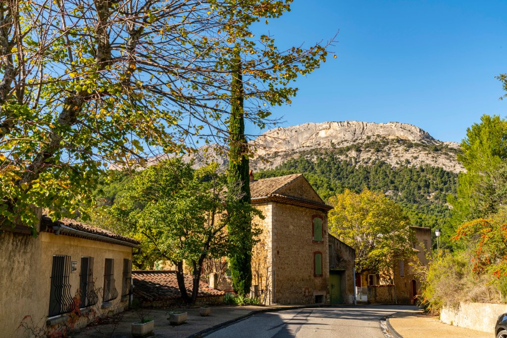 Finally, the village of Crillon le Brave with Mont Ventoux on its left hip. Bédoin is just over the hill.
