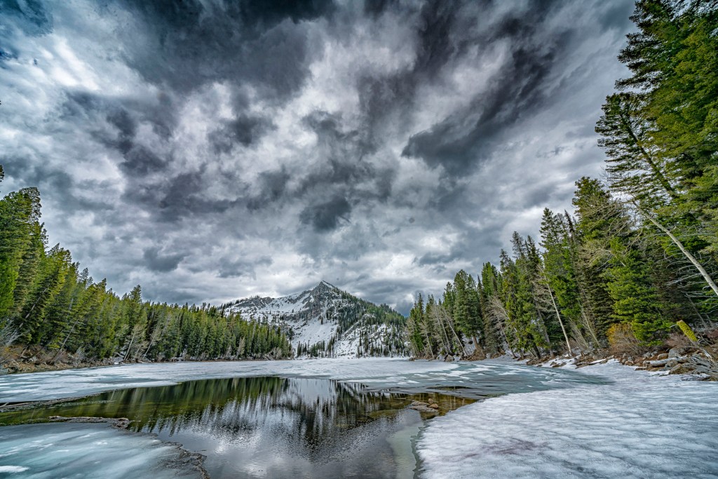 Here is a second image from May which I originally liked and then added my detail filter effect and moved it into favorite status. This image was captured on the occasion of my good friend Tom’s 60th birthday. In the background is Jughandle Mountain which we were on the way to climb. Louise Lake is in the foreground, mostly frozen with a nice reflection. We climbed the mountain, had birthday cupcakes on top then traced our route back down. By the time we returned, the clouds were completely gone and we had a bluebird day. I took more photographs with incredible reflections of the mountain but none were close to being as dramatic as this image.