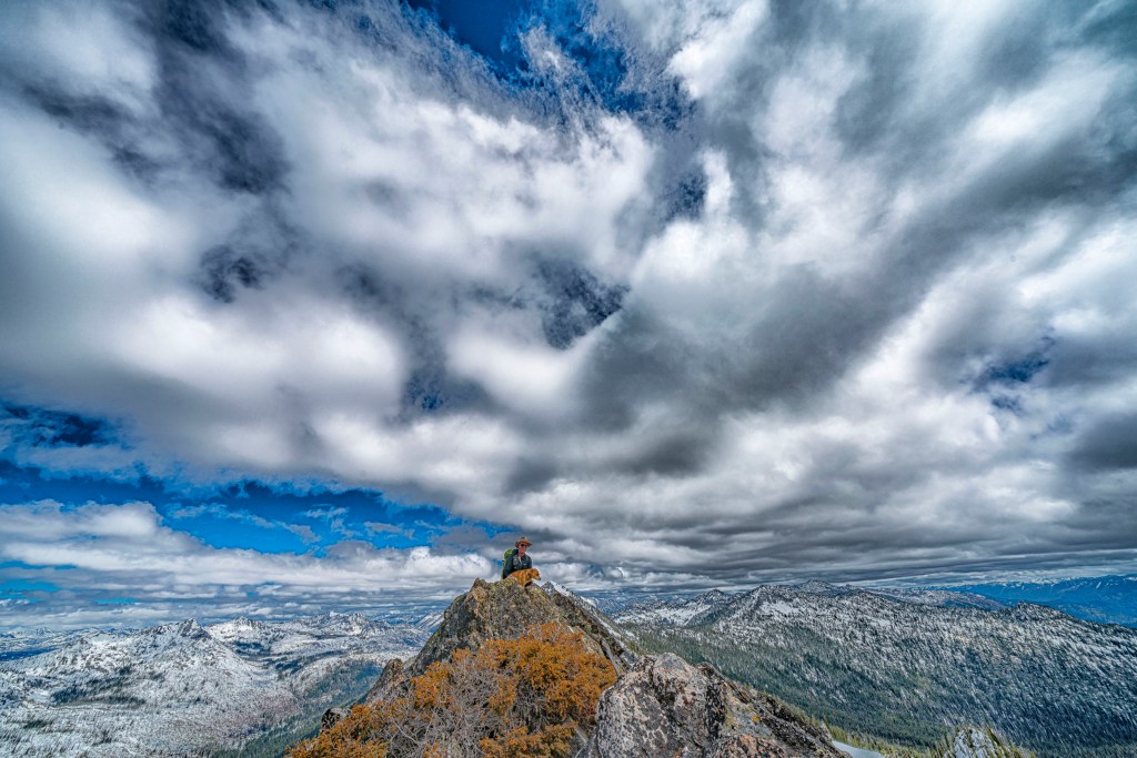 May brought the my return to Idaho and climbing mountains in the Payette National Forest. Below is one of the first peaks we climbed this year, Snowslide Peak. It also turned out to be one of my favorite summit images of the year. You can really get a sense of being on top of the world which is exactly how it feels when you are there. The clouds are almost close enough to touch. Although I rarely feature people in my web site photography, here is a good example where I do, John and Ruby add perspective of scale and are far enough in the distance so that the image is not about them but about the entirety of it all. Finally, you may notice that the skies are quite dramatic. Yes, I have added some detail filters here to dramatize an already dramatic sky. A new tool from my bag of tricks!