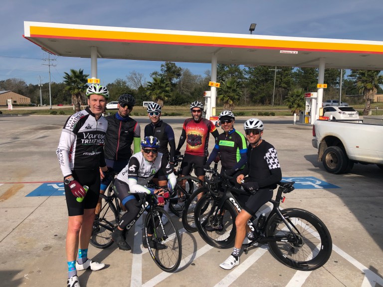 There is not a ton of elevation down here, but we are not pancake flat. Generally, our ride of 100 miles will have about 2400 feet of climbing, all in small 50 to 75 foot rollers. These guys hit those rollers hard!!! I can tell you it hurts! They all ride pretty hard this time of year, for one, because the temperature is quite nice but also because their racing season starts in January.