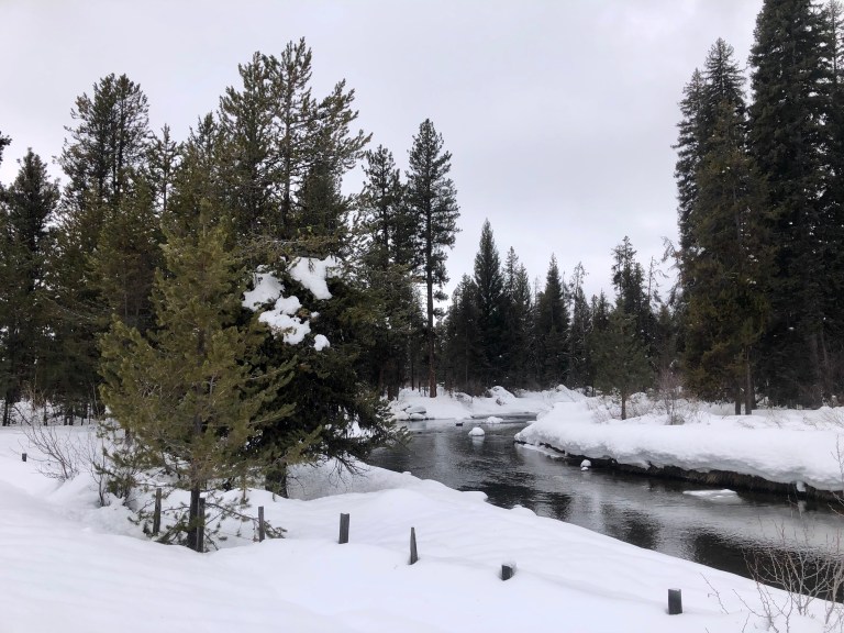 Snow conditions were quite interesting for both stick walkers and 4 wheel drivers! Don’t get the wrong impression from the following video, Ruby was having a ball! Mostly, she had to stay in our ski tracks which is not in her nature. Several days of relatively warm temperatures and wet snow made for a challenging crust!