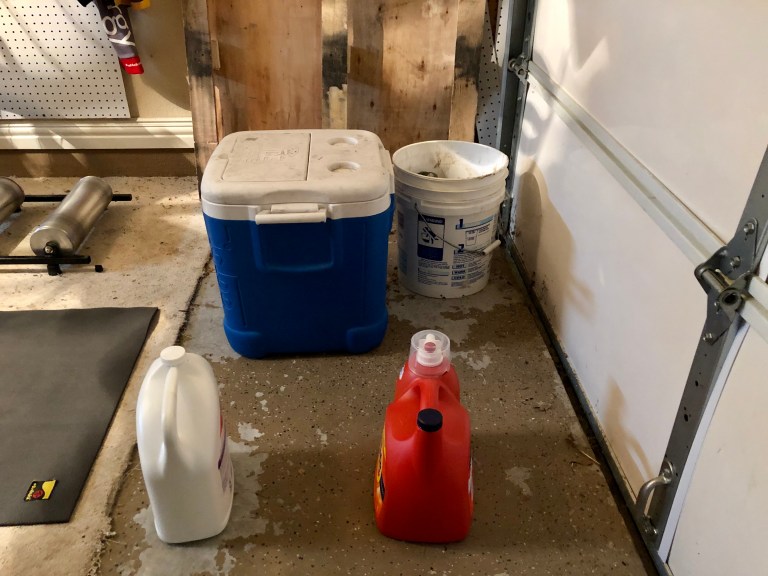 Like everywhere else, my gym is closed so after a quick search of the house for some heavy items, a quick and dirty exercise area has been set up.