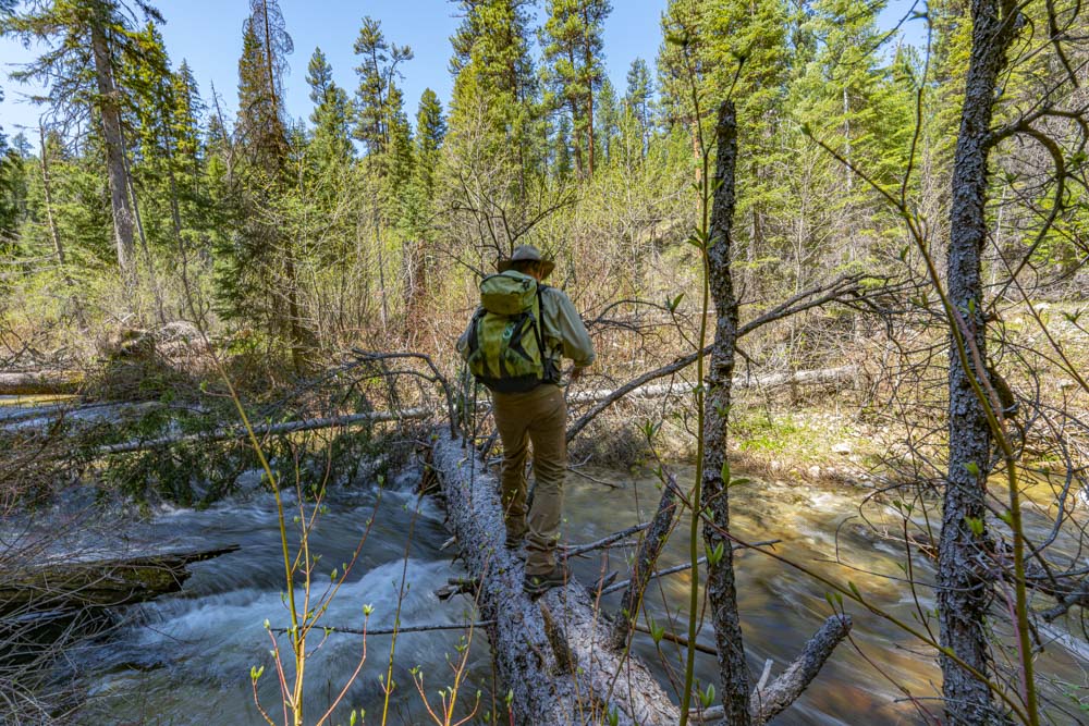 Here is an Idaho backcountry bridge for you. We both noted that the stream flow seemed much higher late in the afternoon as the melting snows high in the basin were coming down in the heat of the day!