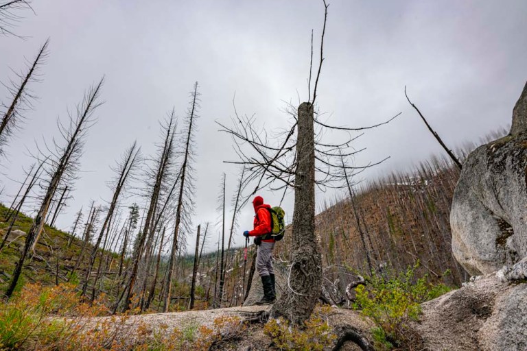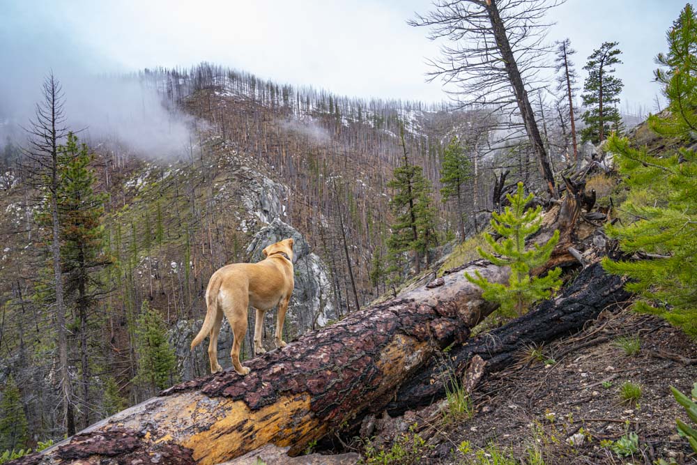 The Dollar Creek Canyon was in an old burn area with mixed burned and live trees but mostly it was burned out which made for easier viewing of the creek. These mixed burn areas are call Mosaic Burns. It is the result of relatively less intense burning which skips around a bit.