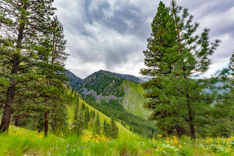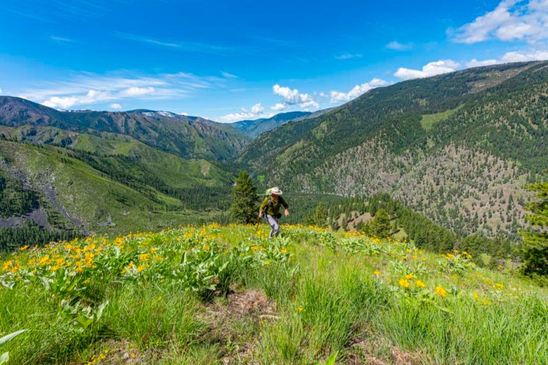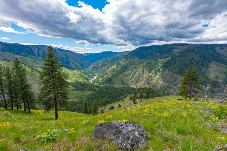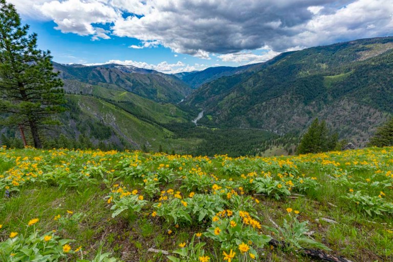 We were soon up on the steep walls of the Salmon River Canyon. Lots of flowers and since we were in following a week of rain, everything was very green.