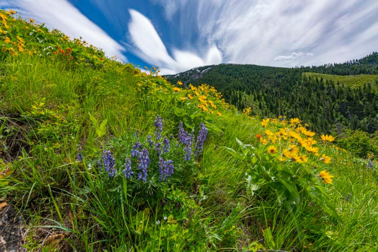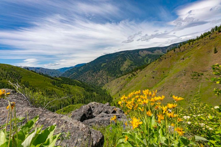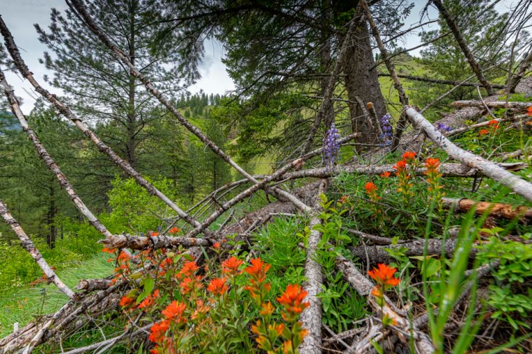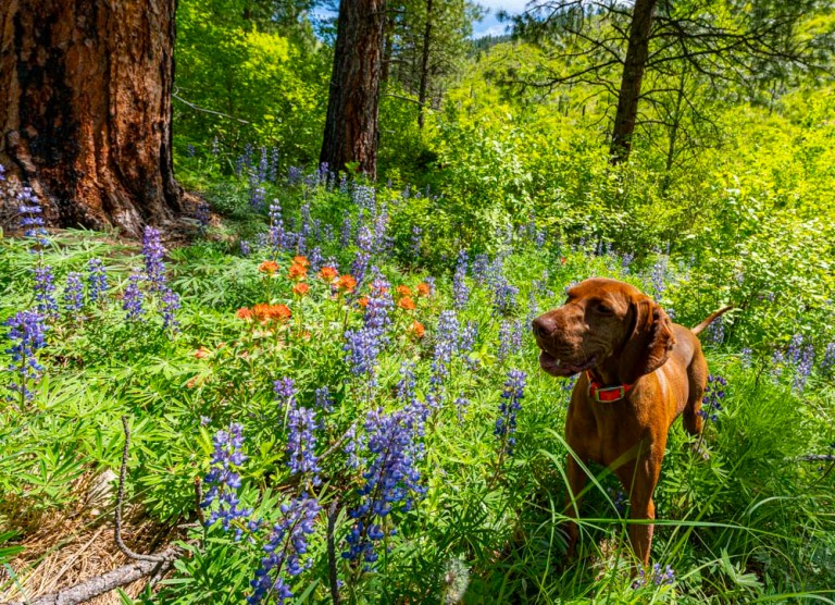 We followed good trail tread a long way up Little Troutner Creek. We stoped for flower pictures and after a while, River came back wondering about the delay.