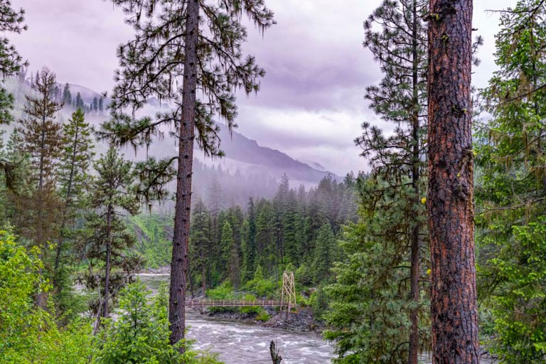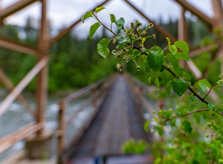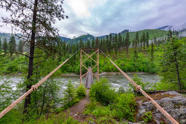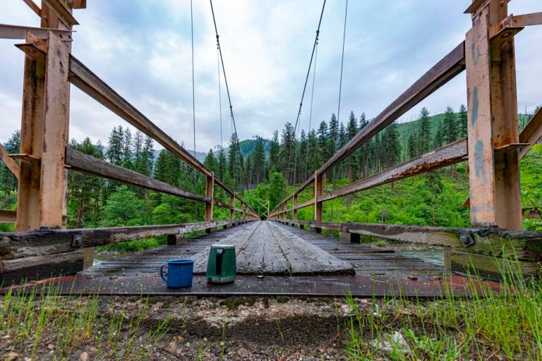 This bridge now replaces the old ferry and is designed for pack strings and hikers. No motorized vehicles in this part of the world.