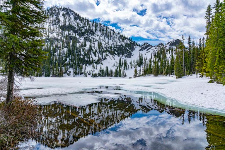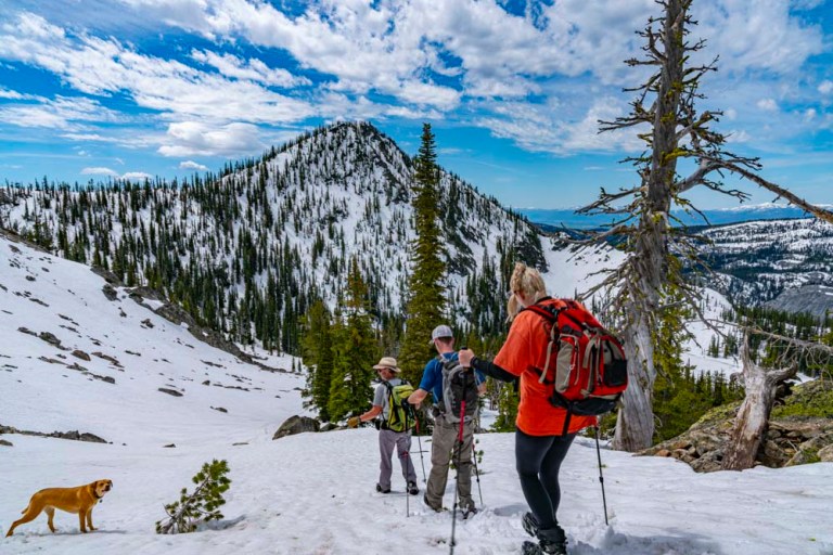 The snow is finally starting to melt up the mountains to the point where we can get up Lick Creek Road. Our first real Lick Creek Road hike of the year as always is Golden Lake/Snowslide Peak. See John’s trip report here: http://www.splattski.com/2020/snowslide/index.html Here is my trip report from last year: https://davefaitlemonde.com/2019/05/29/snowslide-peak-payette-national-forest/