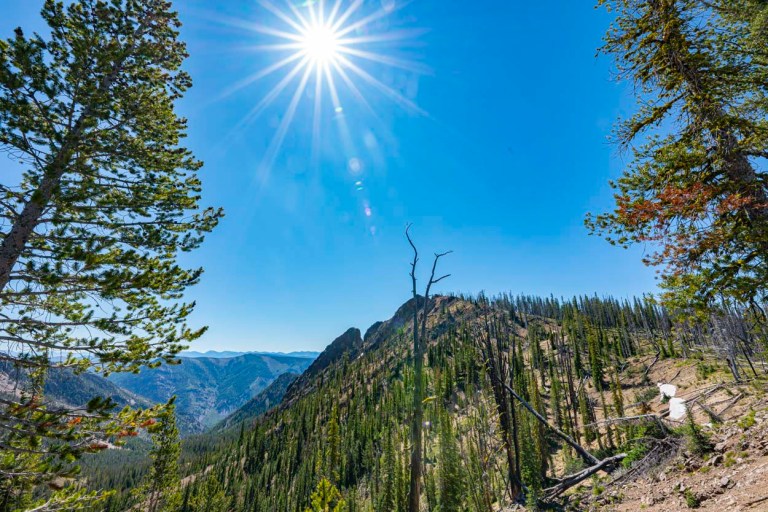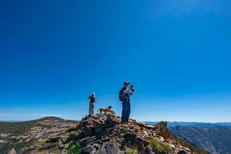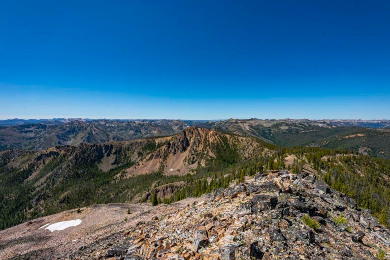 At this point, John and I headed back to base camp and the young bucks, Salmon Jeff and Super Dave headed to Center Mountain which was another couple hours beyond. It was pretty warm by then and there was no water on the ridge route so these snow patches were nice. We refilled our bottles and Ruby enjoyed the refrigeration. Check out Super Dave’s Trip Report here for a report on Center Mountain (when available): http://idahoalpinezone.com