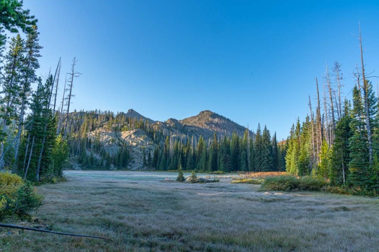 A couple hours later, we awoke to cold temperatures and a frosty meadow.