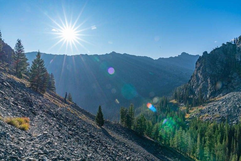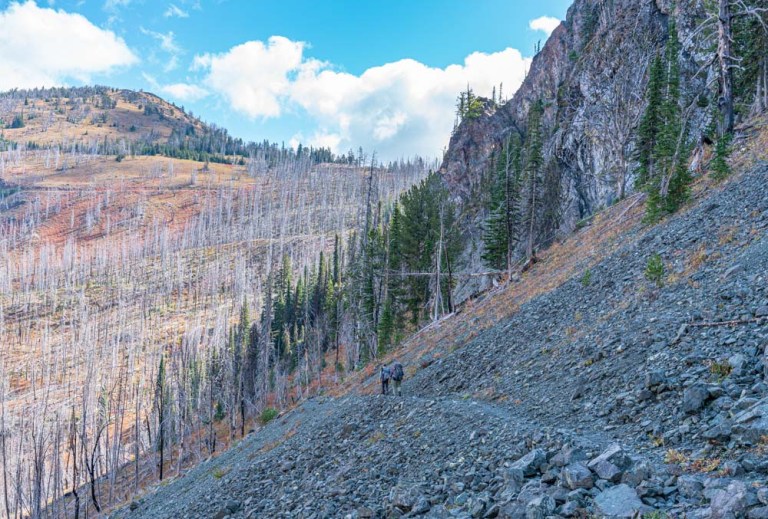 We had about 6 miles of trail to clear today before arriving at our cars. First, we needed to work our way down this canyon to Sheep Creek then back up the other side.