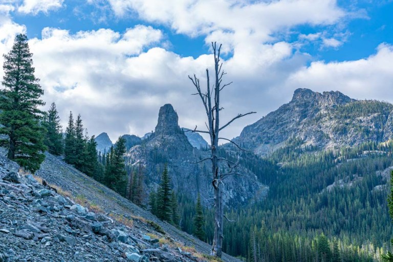 At this point we are nearly level with the top of The Devil’s Tooth (near ground and He Devil comes into view. Check out this post last year when we climbed both the He Devil and the She Devil. https://davefaitlemonde.com/2019/09/12/seven-devils-wilderness-day-3-part-1-idaho/