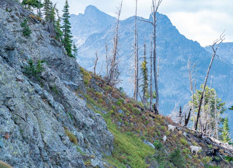 No visit to the Seven Devils is complete without seeing Mountain Goats. Check out this post from our last visit when they came into our camp. https://davefaitlemonde.com/2019/09/13/seven-devils-wilderness-day-3-part-2-idaho/ That is He Devil in the background and Peak 8740 to the right.