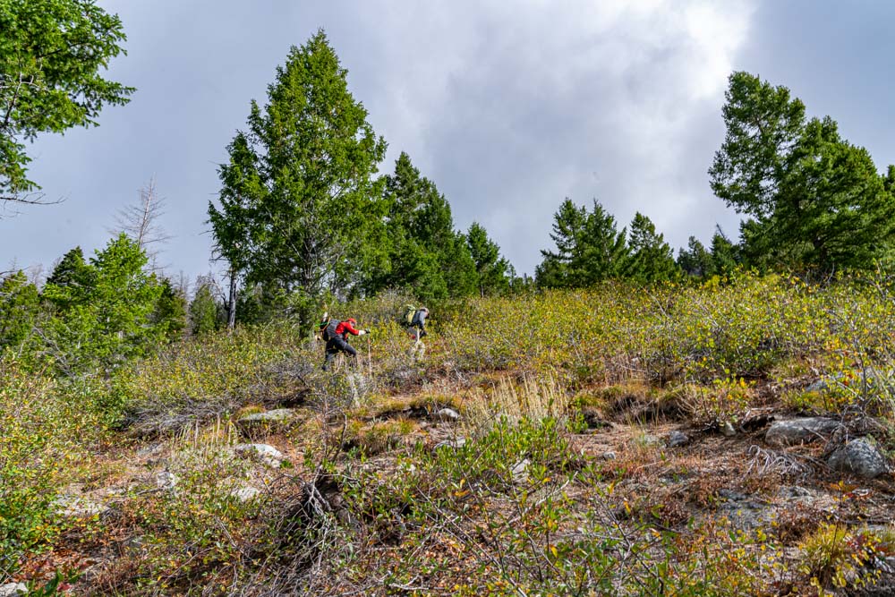 After a goodly amount of time, we stashed the bikes and started our climb to Pete’s Lake.