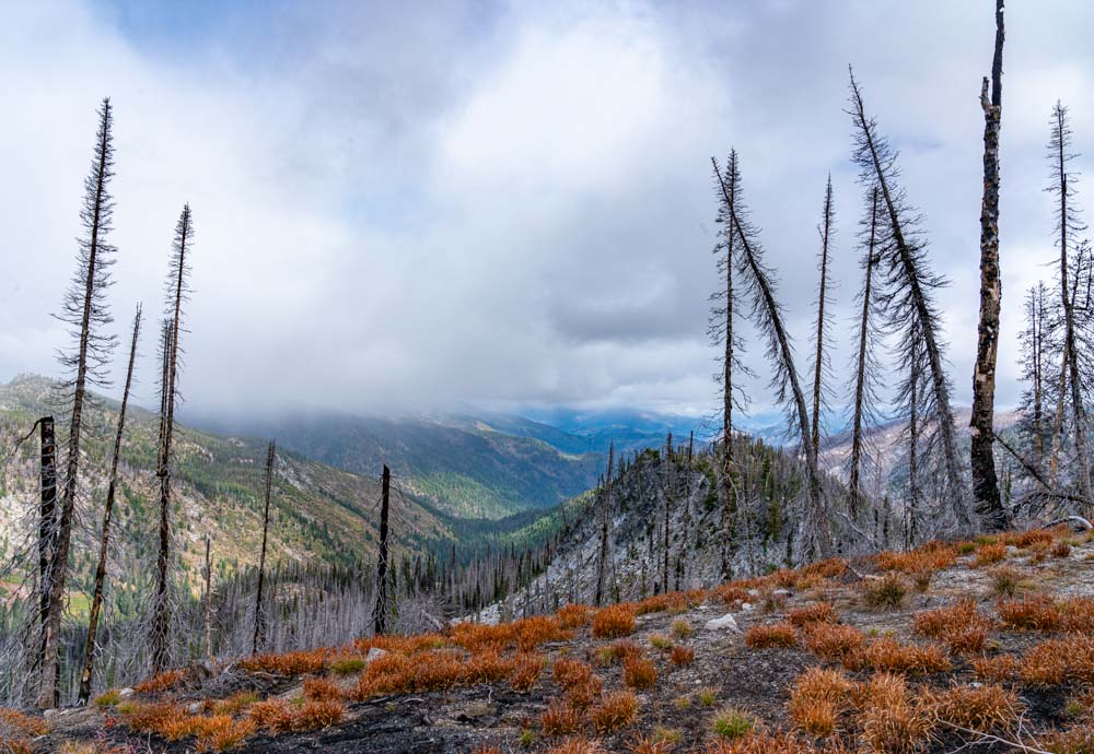 This is a shot from the top of the saddle. Tim later in the day named the saddle ” This f%$#%$in Mountain”.