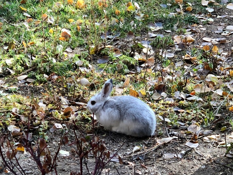 This little fella visited my house yesterday. He is a snowshoe rabbit and his colors are already changing to white, an indication that winter is just around the corner!