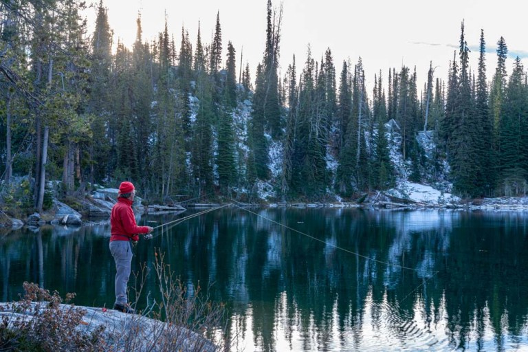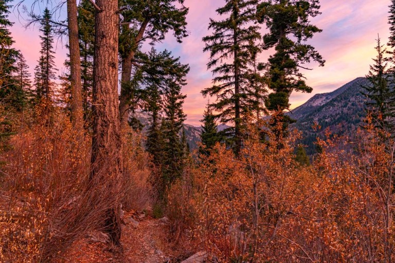 On a beautiful fall morning, John, Art, Ruby, and I headed up to Crystal Lake for a morning hike. We needed to be back in town early today so we started off in the pitch dark with head lamps. The morning offered amazing sunrise light. Notice the progression of the light and progress up the mountain.