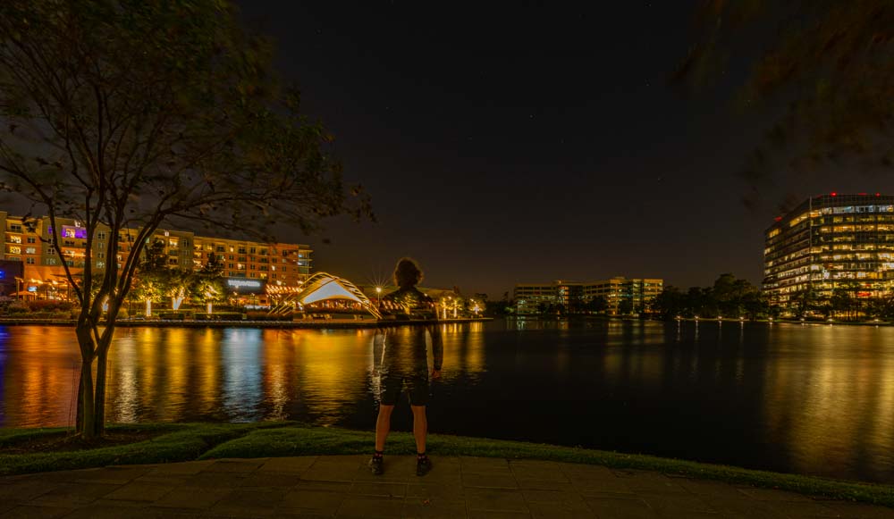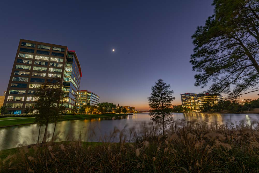 Our evening photo shoot continued as darkness fell. Here you can just make out the moon and a planet just to the right of it. That is moon photography with a wide angle lens.