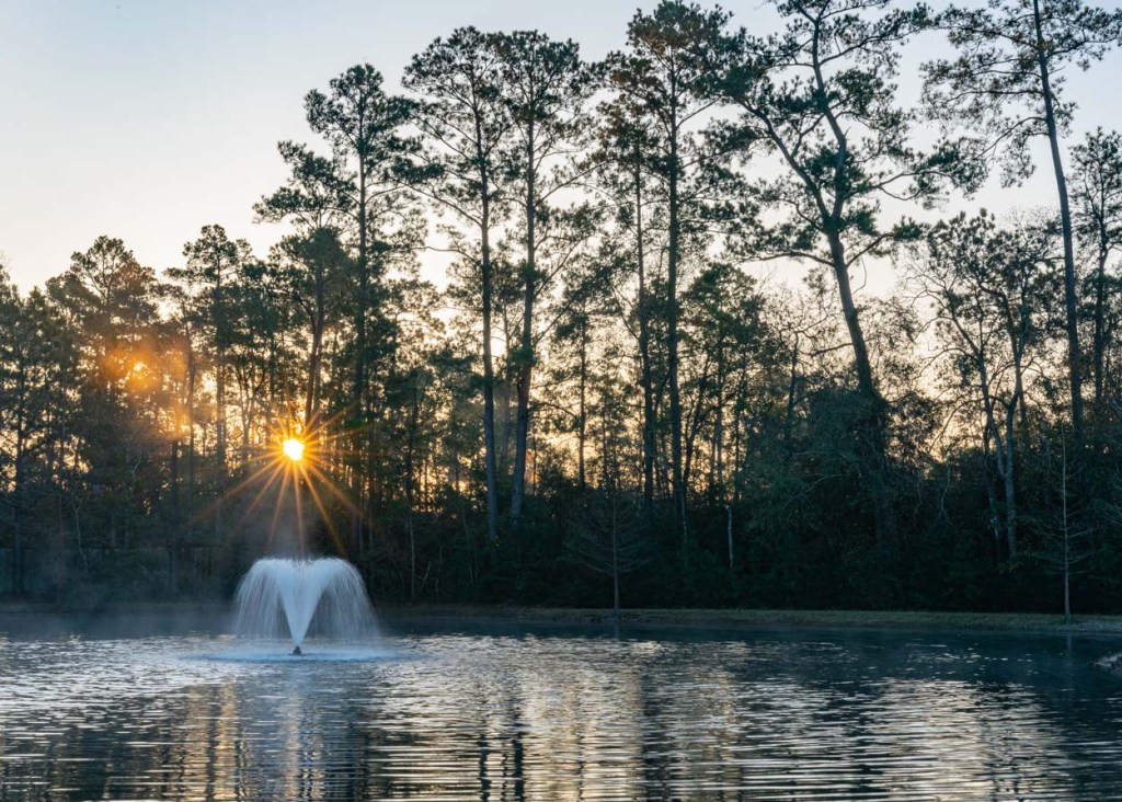 A few minutes before sunrise, the pond’s fountain turns on. I quickly snapped a few images before the ripples erased the reflection.