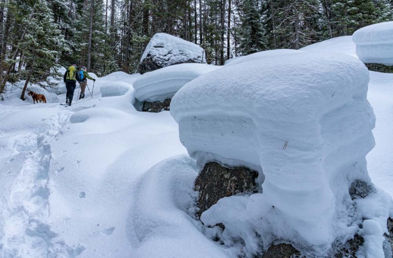 Today, Craig, John, Dakota, Ruby and I headed out for one of our local favorite winter hikes in the mountains near McCall. It was a good day to indulge in some serious photography…. well, serious for me. This is a fun local hike which I have done a few times before, here are some previous trip reports. It interesting to see this hike during different times of the year: https://davefaitlemonde.com/2019/02/01/snowdon-point-payette-national-forest-idaho/ https://davefaitlemonde.com/2020/05/08/snowdon-rock-valley-county-idaho/