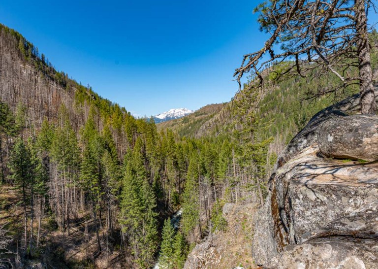 The cliffs around Hazard Creek Falls make for great views of Pollack Mountain.