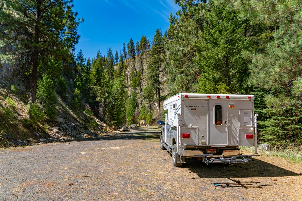 John and I needed to head down to the South Fork of the Salmon River for an Idaho Trails Association Conference so we decided to leave a day early and do some mountain biking. Something we do very rarely is car camp….. or base camping out of our vehicle. John loaded up his wife’s camper and off we went!