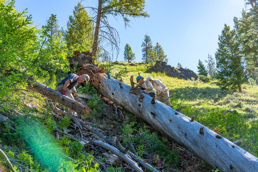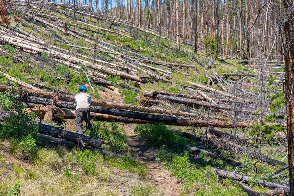 Our hearts sank as we moved into the basin. We relalized that the wind had dropped about 50 additional trees over the trail we had cleared 5 days ago……