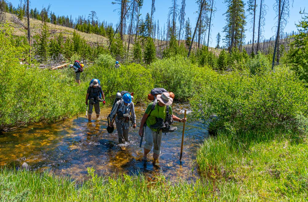 At lunch, we only had about 1.5 miles to go but you can see the troops were tired and dirty! We were already thinking about the small comforts of home we had left in our airport bags back at the ranger station.