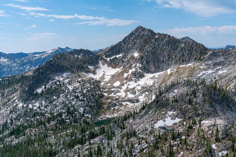 From the top of The Beast, looking at Tsum Peak. Look carefully below the peak just above the trees and you can make out Tsum Lake. After leaving this peak, we swung by the lake, filled up our water bottles and climbed out over the right shoulder of Tsum Peak.