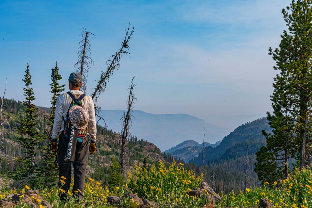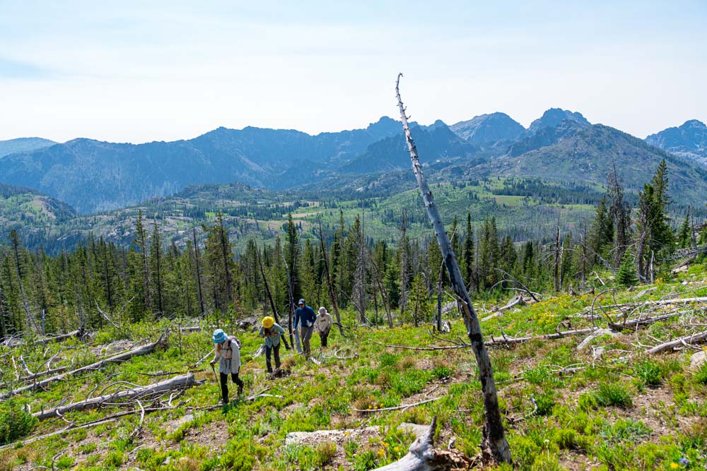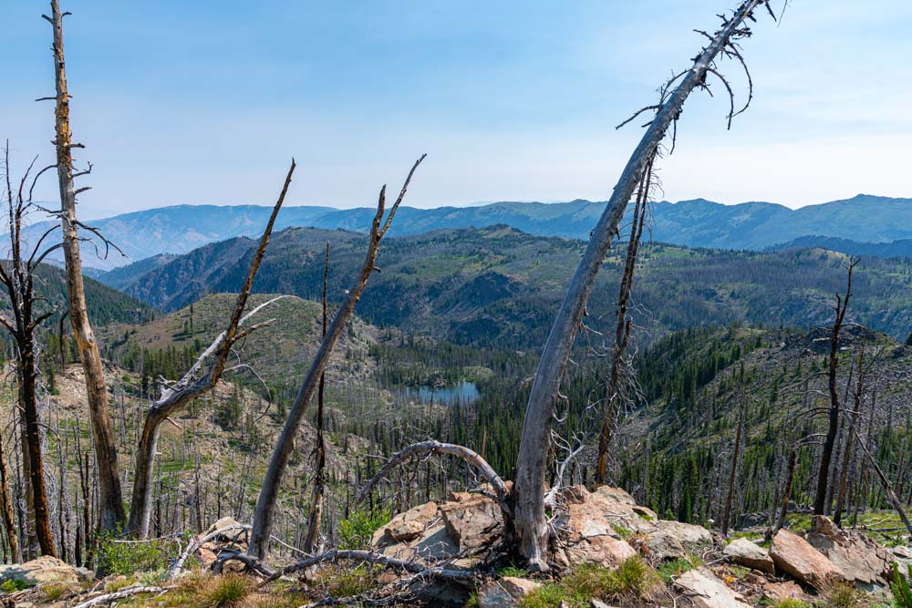 As we climb up over the pass, in the background were all the high peaks of the Seven Devils.