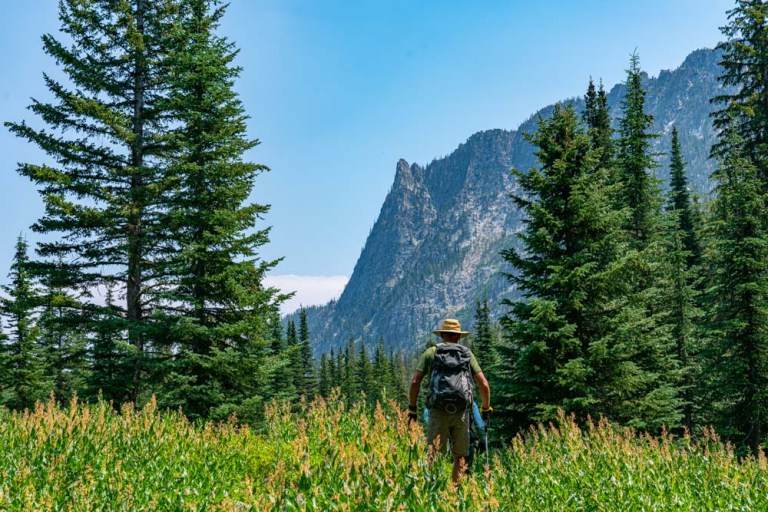 The flowers are still out despite the dry conditions. In the distance, Rain Peak which I climbed a couple years ago.