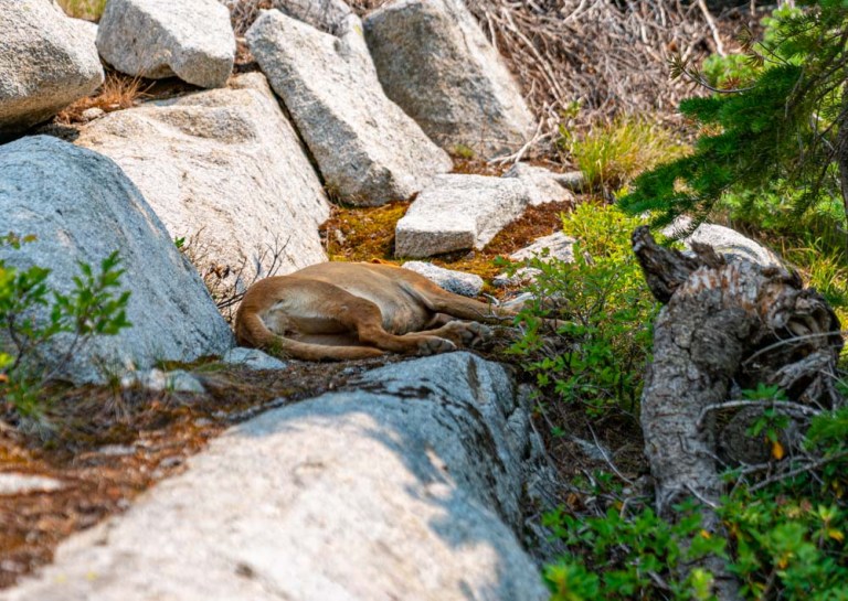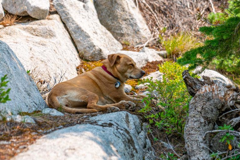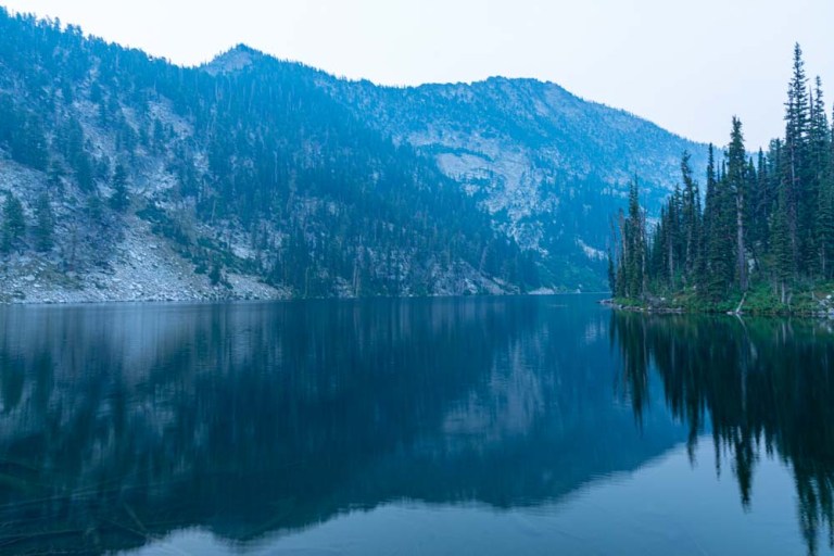 We woke up on morning two and it smelled like a camp fire. Smoke from the wildfires to our northeast had drifted in, just in time for our hard hike over the ridge to Squaretop Lake. Our plan today, to hike up that mountain side across the lake to the little point mid image.