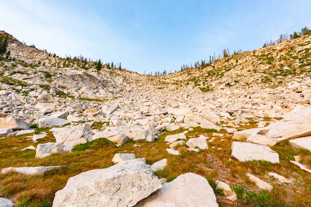 Time to go to work, our route home takes us up and over this saddle. But first, we dropped our full packs here and took a right turn to Upper Nick Lake and then Nick Peak.
