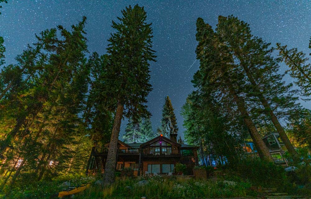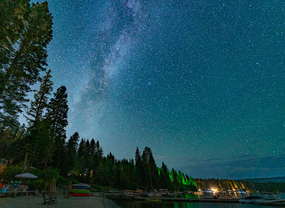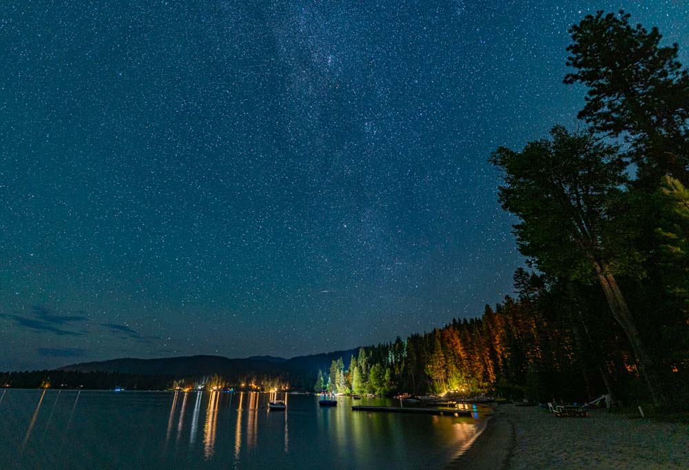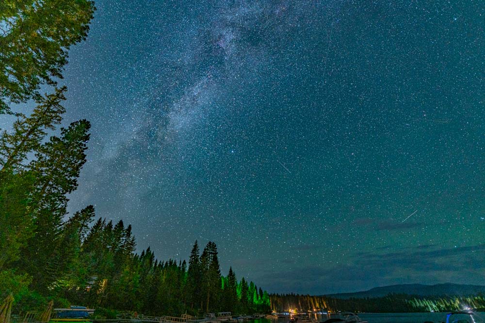 Looking towards downtown McCall, the best part of the galactic center is washed out with the light pollution. (Notice the shooting star in the lower right sky?)