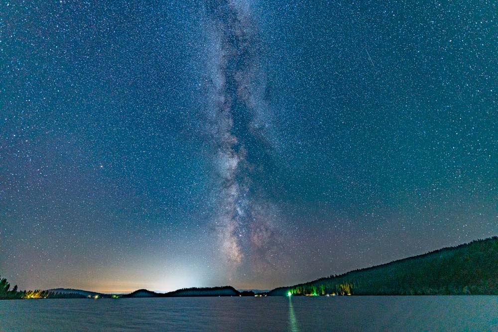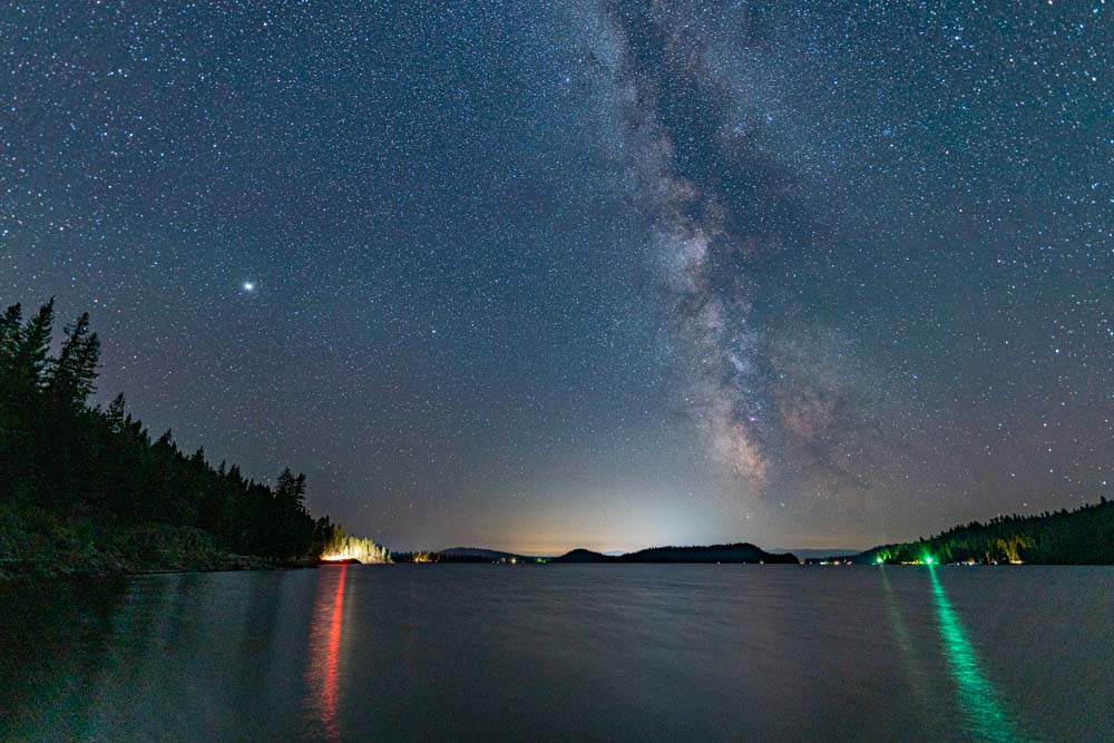 I have had last night’s date circled for a while and had hoped that the moon, stars, and sun were going to line up for me to set up some Star Shootin! I headed out about 1:30 am to a couple of my favorite photography spots on Lake Payette and was not disappointed!