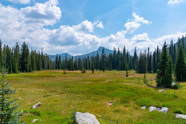 Finally, on the way back to the car, we walked through this beautiful high meadow. Sawtooth Peak in the background. From here, the camera went into the backpack as the brush beatdown starts on the other side of these trees. Only about a 4.5 mile hike, this was a tough one!