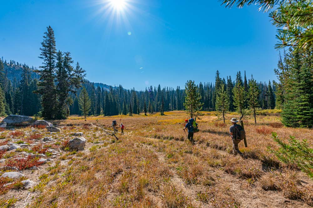 John, Tom, Ruby and I were looking to get out of town for the holiday weekend and yet try to do something a little less difficult than our usual bushwhack beatdowns. We decided to do a point to point cross country hike across several drainages and into some area we have not explored. The day before, Tom and I drove to the Kennally Creek trailhead, dropped off my car and rode our bikes back to town. Early the next morning, we talked Craig and Susan into joining us for the first day’s hike to Rapid Lake (and dropping us off at the nearby Boulder Creek Trailhead). They weren’t able to join us for the entire trip but enjoyed the relatively easy hike to our first camping spot. Yes! That is a trail, all the way to Rapid Lake! Check out John’s trip report here.