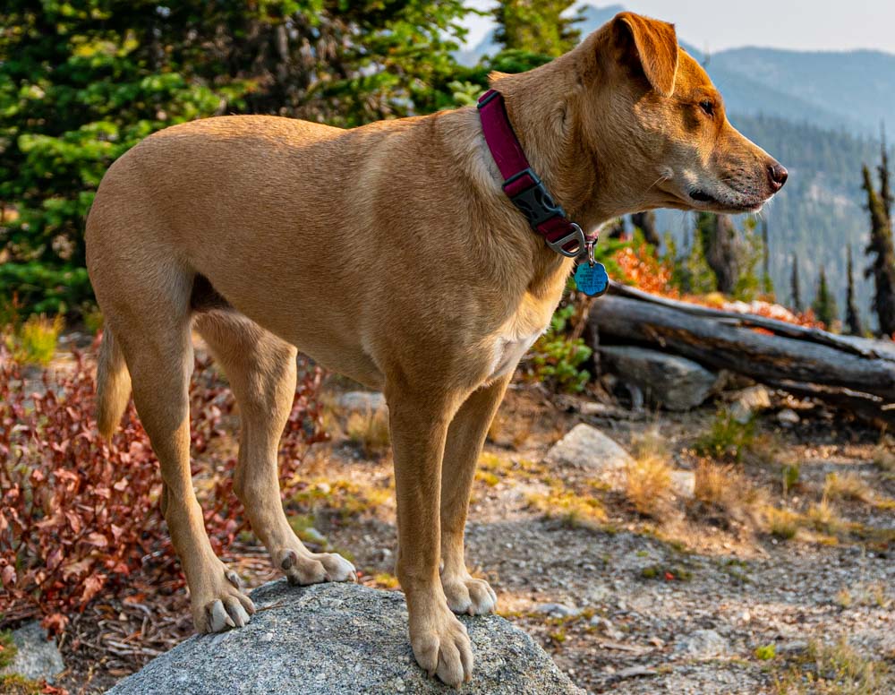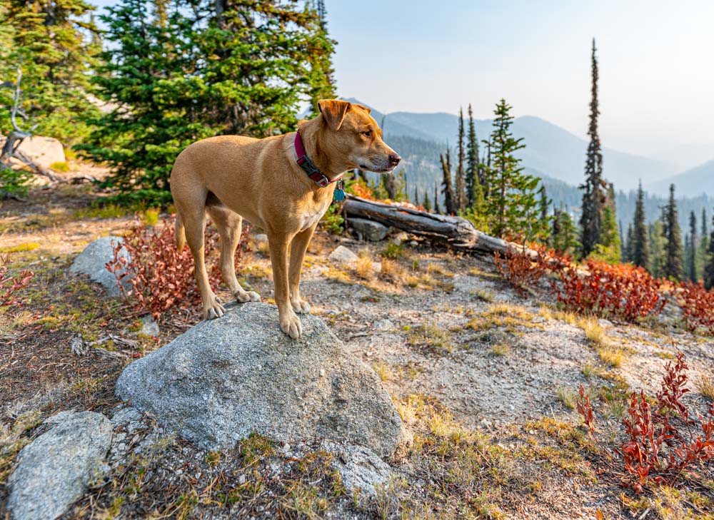 Back on the primitive trail, Ruby stops briefly to check out the Kennally Creek view.