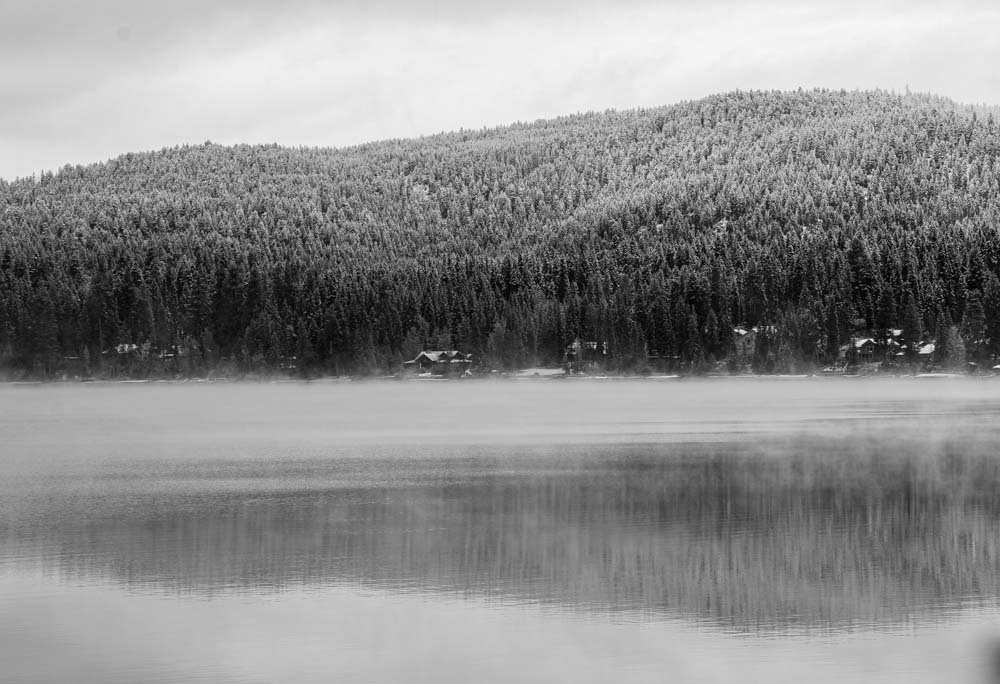 Lake Payette in black and white.