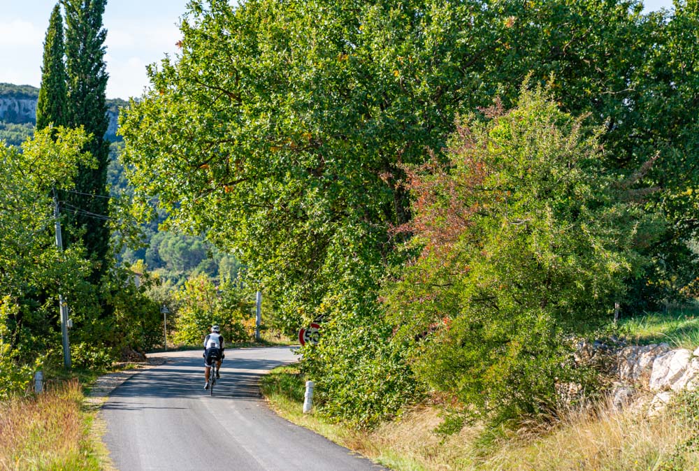 Around noon, I was able to start thinking about something fun. I decided on a big hiking loop to Le Rocher du Causse. This is the big rock above Lauret and will end up being about a 3.5 hour hike. Along the way, I needed to walk along some of the local roads. It is Sunday morning today and I have seen tons of cyclists out getting in their weekend rides.