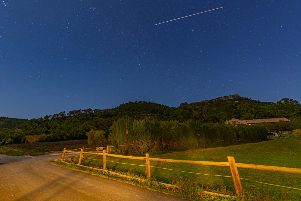 I spun around and shot this image with a strange light in the sky. I’m reasonably certain that this was the international space station flying over and being lit up by the rising sun. Still dark here but 140 miles above, they are being lit up by the rising sun. The long exposure made for an interesting image. That is about a 20ish second exposure and that is how far the station traveled in that amount of time. It goes around the earth about every 45 minutes.