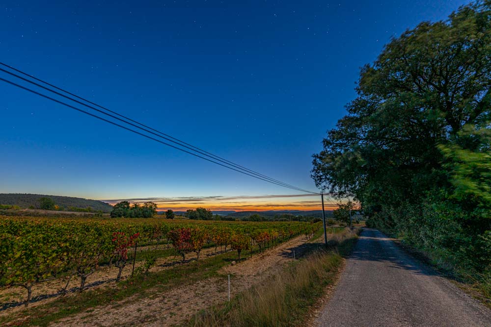 Hints of sunlight on the horizon, this time shot in 14mm glory. A couple things to notice about this image, first, it was almost pitch dark. This lens is about the size of my fist and gobbles light like crazy. I could play with the exposure and make this look almost like the middle of the day. Also check out the power lines and especially the tree on the far right. The wind is gently blowing making anything that moves look a little blurry with the long exposure.