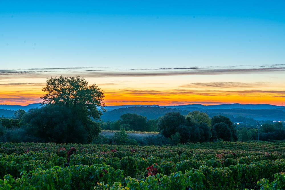 It wasn’t long before I had my standard lens back on. The 70 mm zoom makes for better sunrise photography, especially when the colors are on the distant horizon. Again, notice the blurriness of the leaves in the foreground.