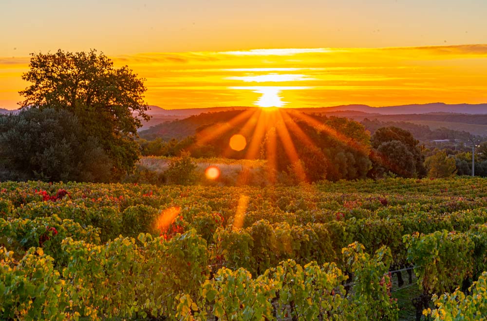 Back to the tree with red grape vines now visible in the increasing ambient light.